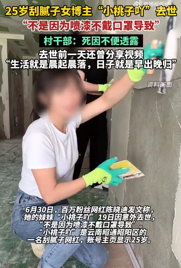 7月1日消息,云南25岁刮腻子女网红“小桃子吖”去世。
